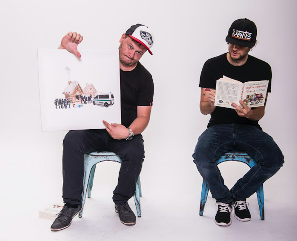 Jsme Dominik Landsman, autor veleúspěšné knihy Deníčky moderního fotra a Tomáš Břínek, grafik a kolážista známý pod pseudonymem TMBK. . Naše 1. Továrna na debilno se stala rekordmanem na crowdfundingovém portálu HitHit, když vybrala téměř 900 tisíc korun od 2000 lidí. Prodali jsme už přes 15 tisíc výtisků. Druhý díl se věnuje grotesknímu scénáři: "Co by se stalo, kdyby Miloš Zeman zemřel?" "Plakal by Jiří Ovčáček tisíc dní a nocí a poté se znovu provdal? "Jmenoval by se Andrej Babiš císařem?". Jde o "skandálně nekorektní" satirické dílo, které čtenáři popisují jako "brutálně ostrou politickou grotesku".